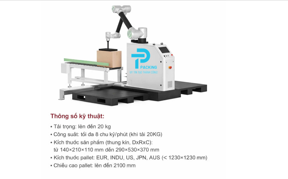 | Tốc độ xếp hàng hoá | 8-12 thùng/ phút |