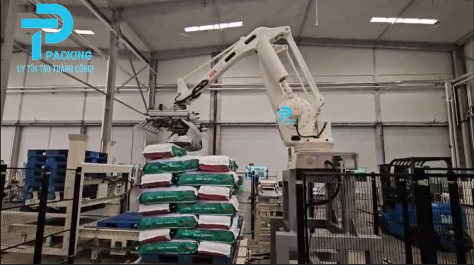 ✔ Tốc độ cao và hiệu quả cao: Có thể xếp pallet từ 10-30 bao mỗi phút (tùy thuộc vào model), nâng cao hiệu quả sản xuất.